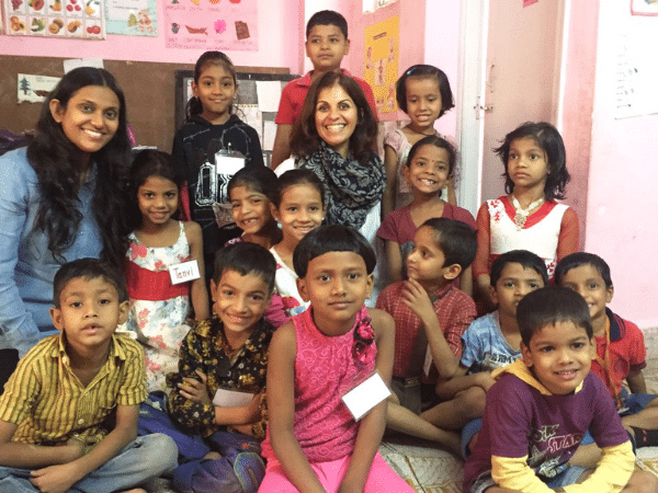 Volunteers with a group of students at an after-school program in Mumbai, India.